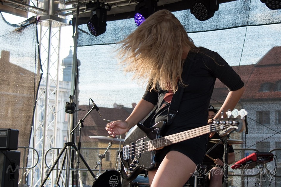 Zpívající basačka Andrea Kohoutová dávala do každé skladby spoustu energie, která se přelévala do publika postávajícího opodál zastřešeného pódia. Pohyb na jevišti, texty v angličtině a dobrý zvuk dotvářely kulisu všem songům, bušících do nás z kvalitní reprosoustavy.