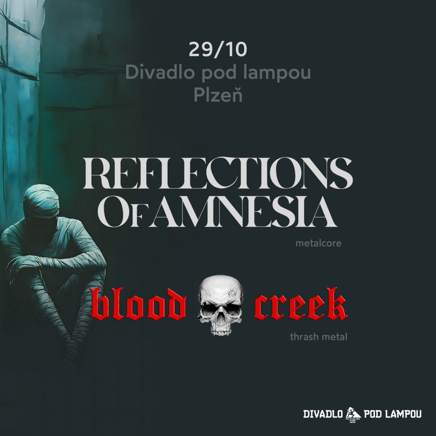 Premiérový koncert kapely Reflections Of Amnesia proběhne v plzeňské Lampě!24. října 2025 (22:57)Zajímavý, a svým obsahem unikátní koncert, nabídne středeční večírek 29.10.2025 v Divadle pod lampou. Na klubové scéně se poprvé na veřejnosti představí nově vzniklá skupina Reflections Of Amnesia. Jako hudební host rozehřeje publikum domažlická kapela Bloodcreek. Přijďte se pobavit a hlavně podpořit živou muziku i vy – klub se otevře v 18:00, start je pak ohlášený na 19:30 hodin.