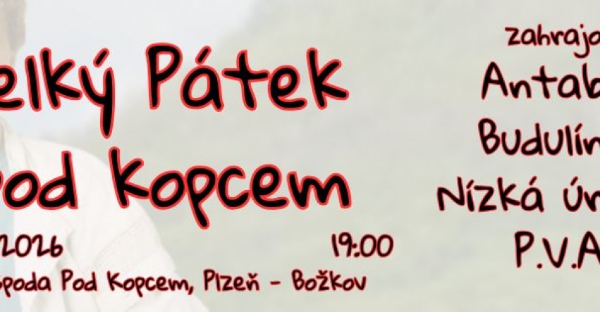 Velký Pátek pod Kopcem aneb punkový večírek jak má být27. března 2026 (22:01)Sál kultovní hospody v Božkově otevře velikonoční víkend festivalem s tematickým názvem – Velký Pátek pod Kopce. O přízeň publika se budou ucházet hned čtyři formace, jež se postarají o řádnou dávku kvalitní muziky. Přijďte se 3.4.2026 pobavit i vy, start je ohlášený na 19:00 hodin.